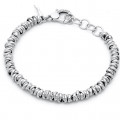 Delicato ed elegante, questo bracciale è caratterizzato da tante coppie di anellini in argento annodati l’uno sull’altro, che donano un effetto molto luminoso. Realizzato artigianalmente in azienda.