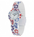 • Cinturino in silicone bianco con stampa che richiama elementi estivi e chiusura a clip;