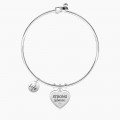Bangle in acciaio con ciondolo cuore lucido e satinato con cristallo e scritta “Strong woman”.