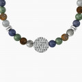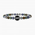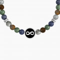 Bracciale elastico Famiglia da uomo in acciaio con pietre naturali multicolor e elemento in PVD nero con infinito e scritta “Family”.