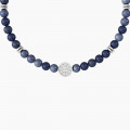 Bracciale elastico da uomo in acciaio con dumortierite blu e cristalli bianchi e neri.