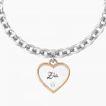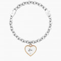 Bracciale in acciaio con catena rolò “comfort fit” e ciondolo satinato a cuore con rifinitura color oro rosa e cristallo.