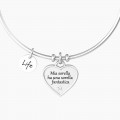 Bangle in acciaio con ciondolo satinato a cuore con rifinitura lucida e cristallo.