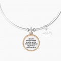 Bangle in acciaio con ciondolo satinato tondo con rifinitura borchiata color oro rosa.