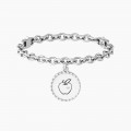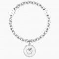 • Bracciale in acciaio con catena rolò “comfort fit” e ciondolo satinato tondo con rifinitura borchiata e mela;