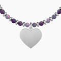 • Bangle con filo armonico in acciaio, sfere in ametista e ciondolo satinato a cuore;