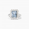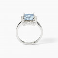 Anello da donna regolabile in argento rodiato con acquamarina sintetica taglio princess e zirconi bianchi: