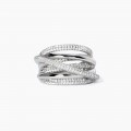 Anello a fascia in argento con intrecci in pavé di zirconi.