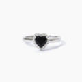 Anello regolabile in argento con zircone nero centrale taglio cuore circondato da pavè.