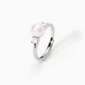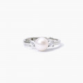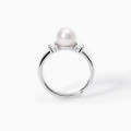 Anello regolabile in argento con perla coltivata e zirconi bianchi ai lati.