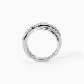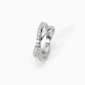 Anello in argento a doppia fascia incrociata con zirconi bianchi.