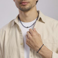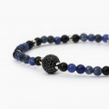 Bracciale elastico da uomo in argento rodiato con Agata nera, sodalite e sfera con zirconi neri.