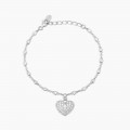 Bracciale rolò in argento con punti luce in zircone e ciondolo a cuore in pavé di zirconi.