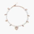 Bracciale perle conchiglia, cuore in pavé di zirconi e piccoli cuori in argento placcato oro rosa 18k alternati a punti luce in zircone.