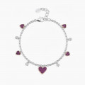 Bracciale in argento bicolore con cuori rosati in pavé di rubini sintetici alternati a punti luce in zircone.