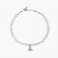 Bracciale con perle conchiglia con ciondolo in argento a forma di cuore in pavé di zirconi.