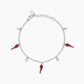 Bracciale regolabile da donna in argento rodiato con catena forzatina, ciondoli smaltati a forma di cornetto e zirconi.