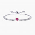 Bracciale tennis regolabile in argento bicolore con zirconi e cuore in rubino sintetico.