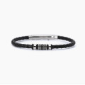 Bracciale da uomo in argento rodiato con pelle nera, acciaio e zirconi neri.