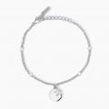 Bracciale in argento placcato oro 18k con catena forzatina. Il ciondolo rotondo può essere personalizzato attraverso l’incisione di date, iniziali o nomi. La stella pavè conferisce lumonisità al gioiello: