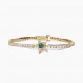 Bracciale tennis in argento placcato oro 18k con stella in pavé di zirconi bianchi con agata verde centrale.