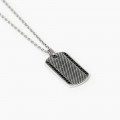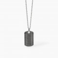 Collana da uomo in argento brunito con catena forzatina e piastra con texture rombi e zirconi neri;