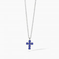 Girocollo regolabile da donna in argento rodiato con catena forzatina, ciondolo croce e zaffiri sintetici.