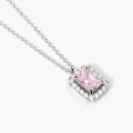Girocollo regolabile da donna in argento rodiato con catena forzatina, zircone rosa taglio princess e zirconi bianchi.