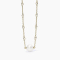 Girocollo in argento placcato oro 18k con catena forzatina, perla coltivata centrale e punti luce.