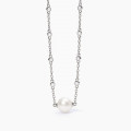 Girocollo in argento con catena forzatina, perla coltivata centrale e punti luce.