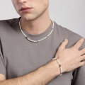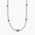 Collana da uomo in argento rodiato con perle coltivate e inserti con zirconi neri.
