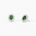 Orecchini da donna a lobo in argento rodiato con smeraldo sintetico taglio ovale e zirconi bianchi: