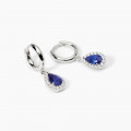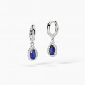 Orecchini da donna in argento rodiato con zaffiri sintetici pendenti taglio goccia e zirconi bianchi.