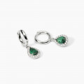 Orecchini da donna in argento rodiato con smeraldi sintetici pendenti taglio goccia e zirconi bianchi.