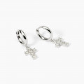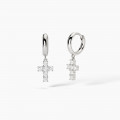 Orecchini da donna in argento rodiato con ciondolo croce e zirconi bianchi: