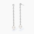 Orecchini pendenti in argento con perle coltivate e punti luce.