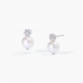 Orecchini da donna a lobo in argento rodiato con perla coltivata e zirconi bianchi.