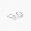 Orecchini da donna a monachella in argento rodiato con perle coltivate e zirconi bianchi:
