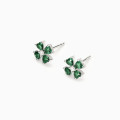 Orecchini a lobo da donna in argento rodiato a forma di quadrifoglio con smeraldi sintetici taglio cuore e zirconi.