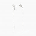 Orecchini pendenti da donna in argento rodiato con stelle in pavé di zirconi bianchi: