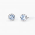 Orecchini da donna in argento rodiato a lobo con acquamarina sintetica circondata da zirconi bianchi.
