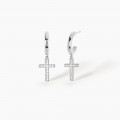 Orecchini a semicerchio con pendente a croce in zirconi: