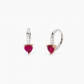Orecchini a cerchio da donna in argento rodiato e placcato oro rosa 18K con rubino sintetico taglio cuore e zirconi.