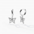 Orecchini a cerchio in argento con pendente a forma di farfalla in zirconi:
