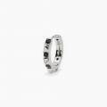Mono orecchino da uomo a cerchio in argento rodiato con borchie e zirconi neri.