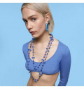 • Orecchini realizzati con anima in lega Swarovski rodiata e cristallo Aqua, saturo, completamente sfaccettato;