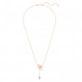 Questo stupendo pendente della famiglia Volta combina i colori più belli. La catena placcata color oro rosa è collegata a una forma attorcigliata ispirata al fiocco e presenta una serie di brillanti cristalli trasparenti incastonati utilizzando la tecnica dello chattonage. A completamento del design, un’unica pietra a forma di pera color rosa che cattura l’attenzione. Questo gioiello è un regalo romantico ideale.