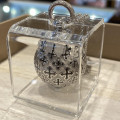 NATIVITAS in argento è una miscellanea di rimandi al confortevole ed accogliente grembo materno: sulla tradizionale forma tondeggiante, che custodisce il sonaglio, l’iconico capolettera M di Mater emerge, quasi fosse incastonato, tra i piccoli FLORE – il fiore di TUUM simbolo di vita – che costellano tutta la sfera.